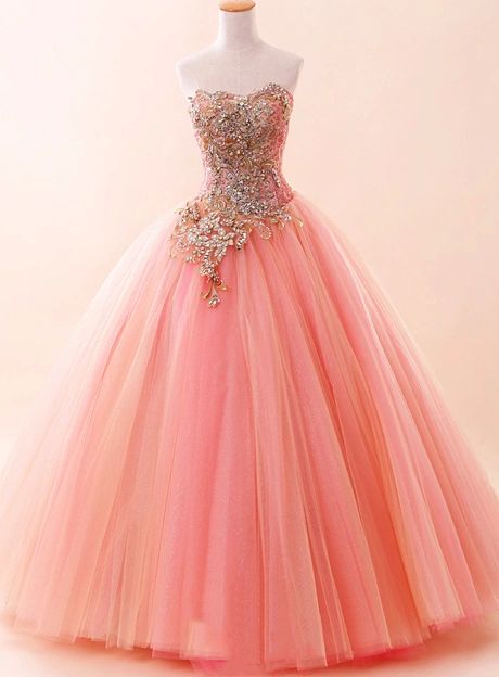 Luxury Quinceanera Dresses Ball Gown Strapless Pink Tulle Quince Gowns Vestidos De 15 Anos Formal Long Sweet 16 Dress HZ0311