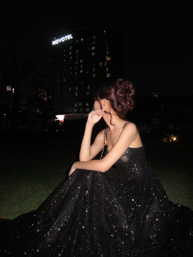 Aesthetic A line Spaghetti Straps Black Sequins Long Formal Dresses Evening Prom Dress HZ0311