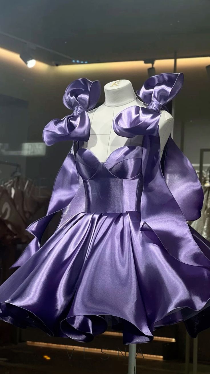 Cheap Ball Gown Spaghetti Straps Satin Grape Short 16th Birthday Dress Homecoming Dresses Cocktail Gown HZ0311