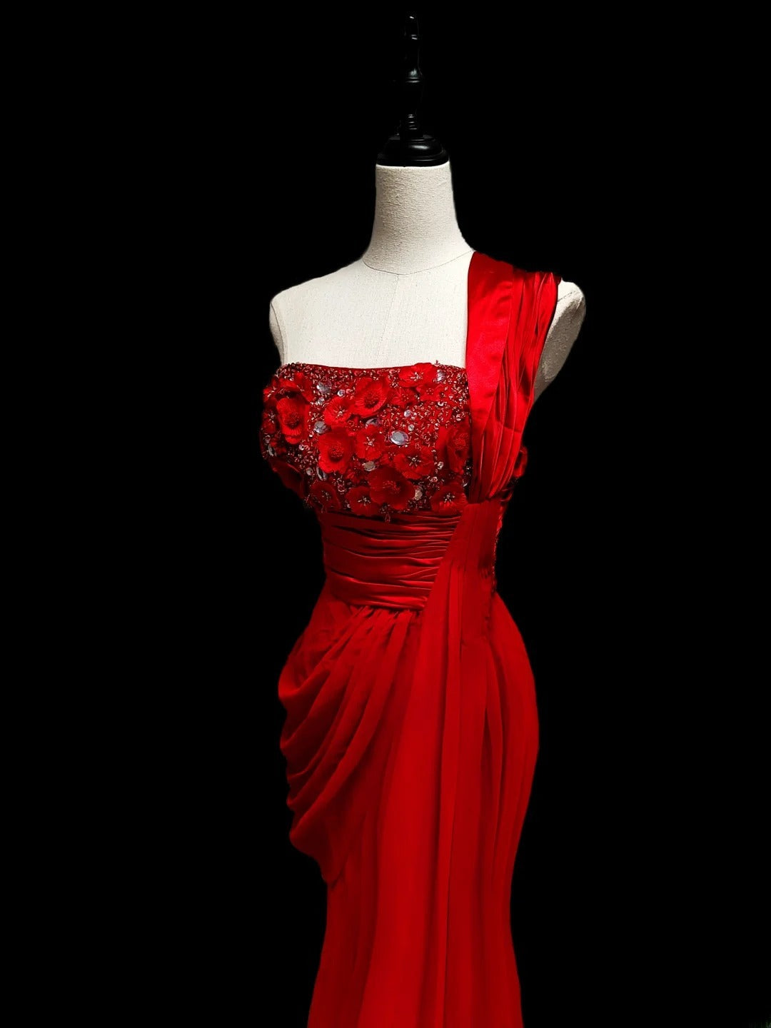 Classic Mermaid One Shoulder Red Chiffon Ruffles Long Prom Dresses High School Senior Graduation Dance Evening Outfits HZ0311
