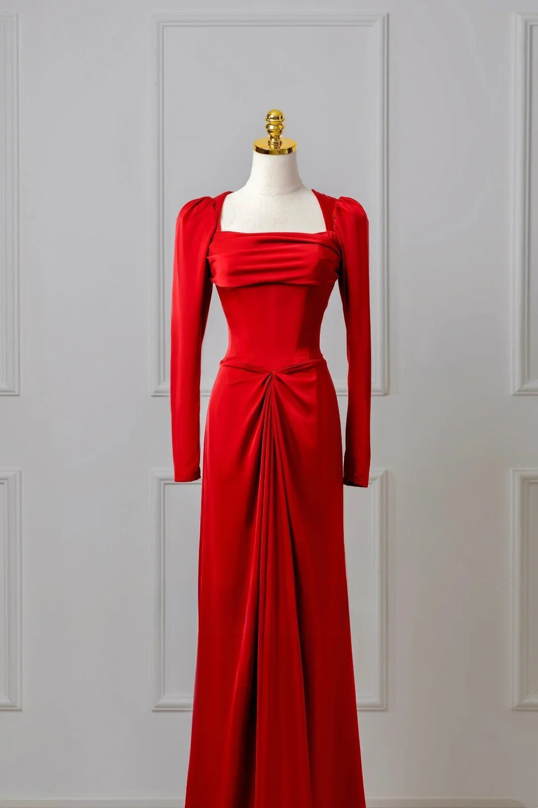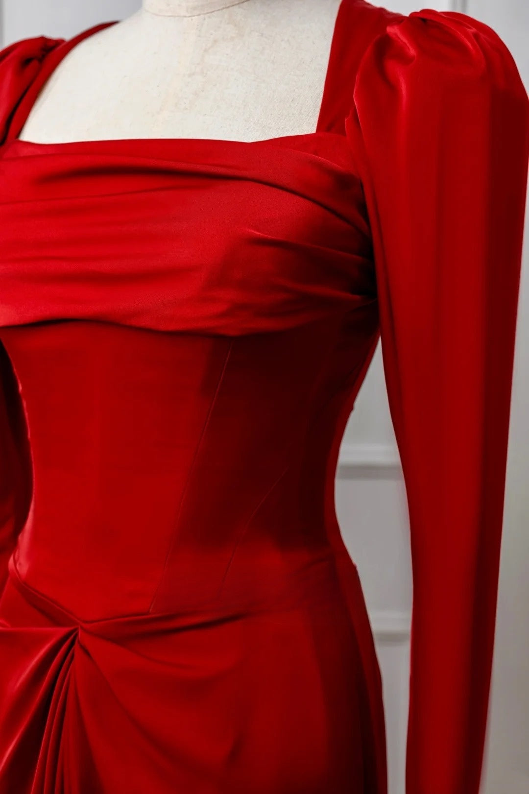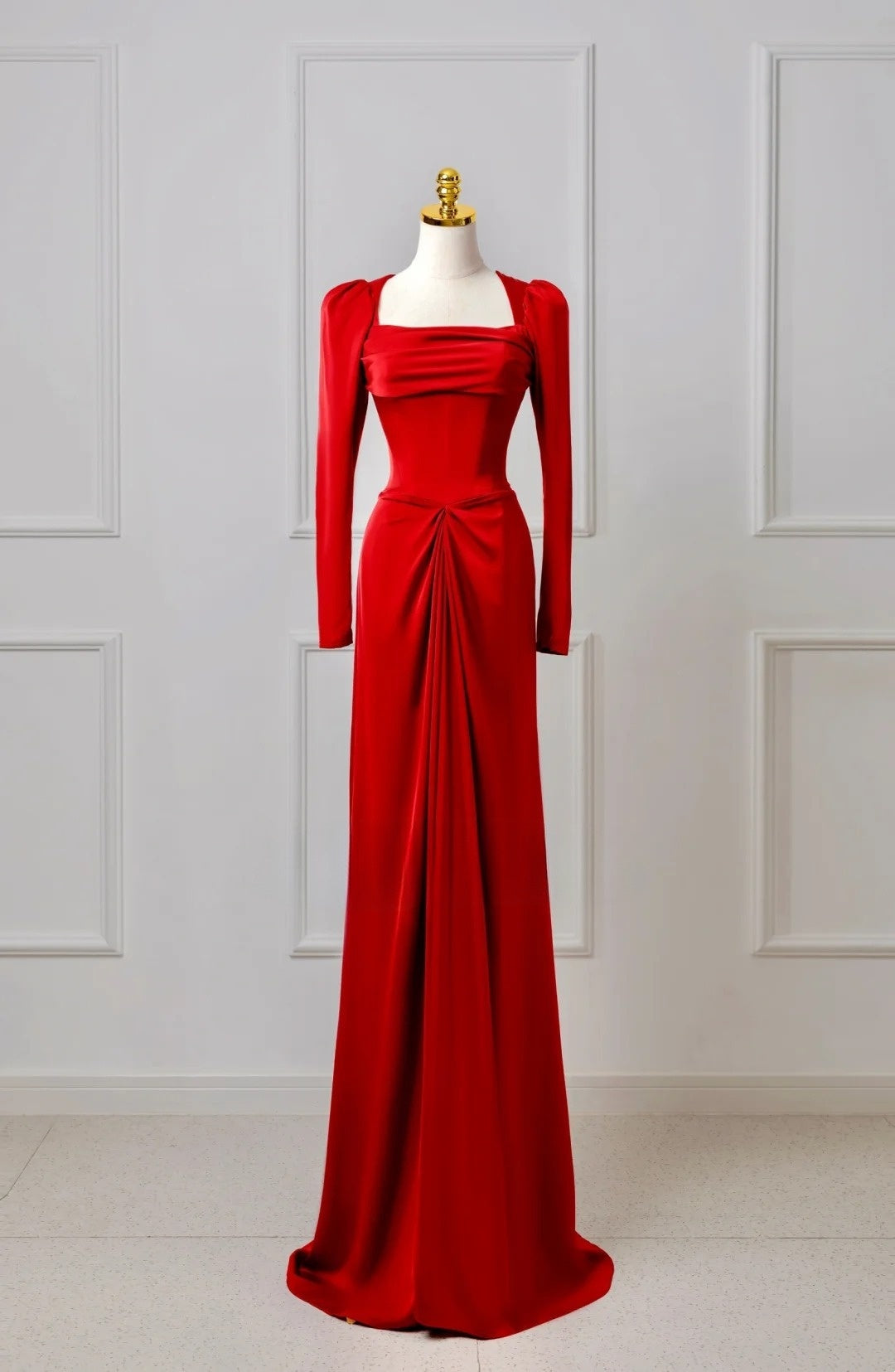 Classy Mermaid Square Neck Red Prom Dresses Long Sleeve Party Dress Evening Outfits Graduation Dress HZ0311