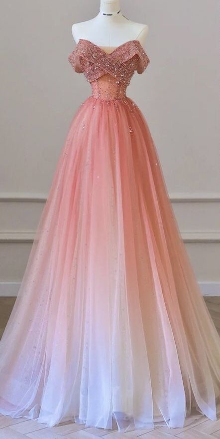 Elegant Ball Gown Off The Shoulder Ombre Pink Tulle Long Prom Dresses Impress 18th Birthday Outfits Prom Gown HZ0311