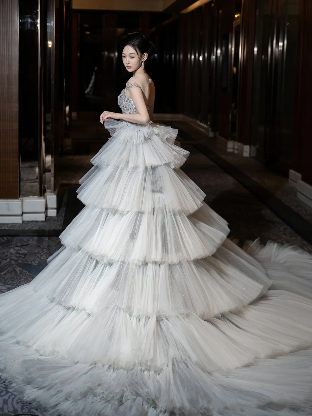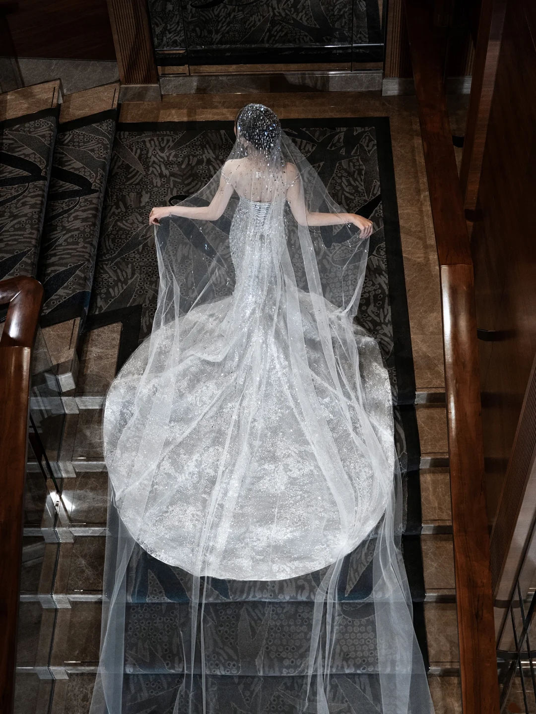Princess Mermaid Off The Shoulder Short Sleeves Silver Sequin Fitted Long Wedding Dress Bridal Gown Wedding Dresses HZ0311