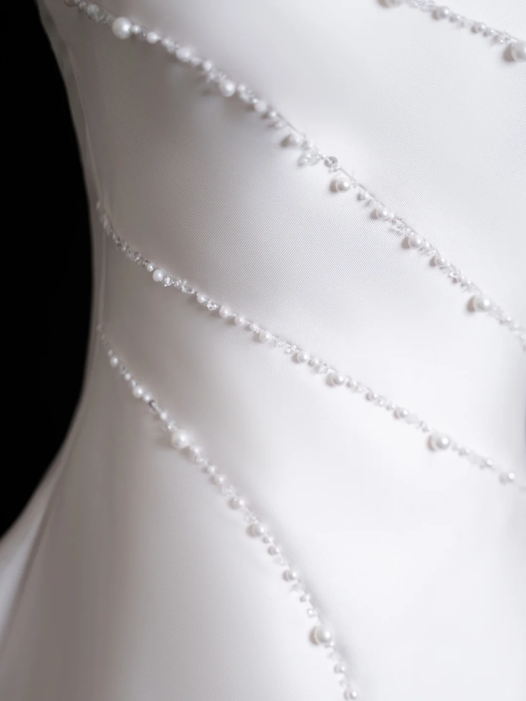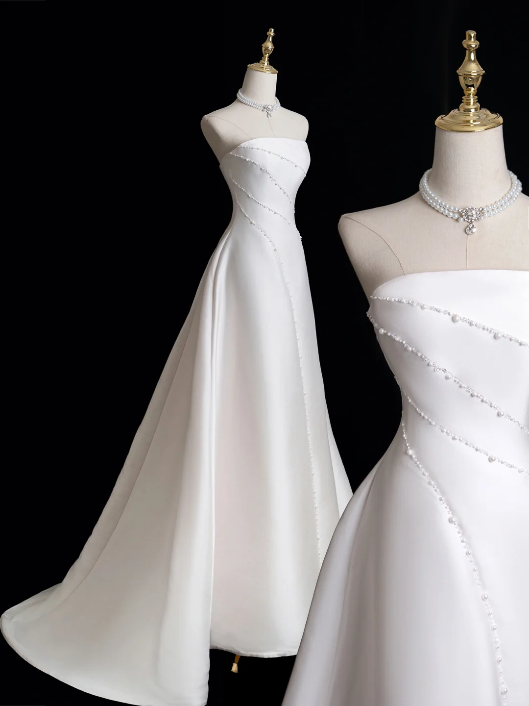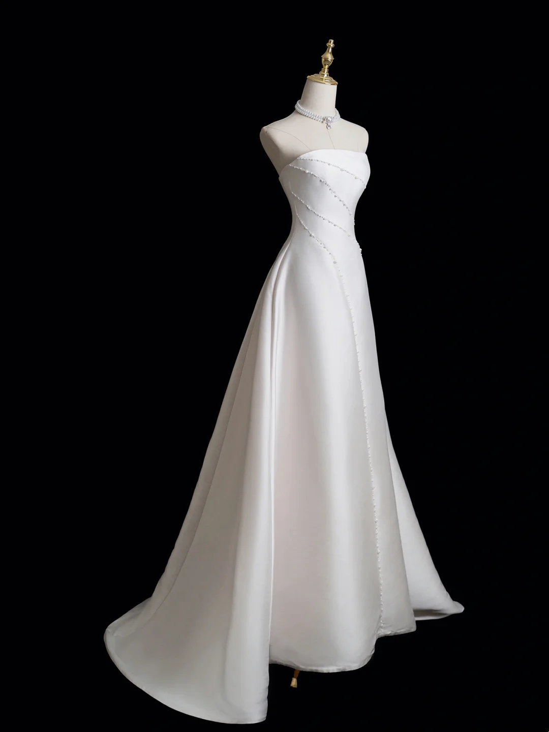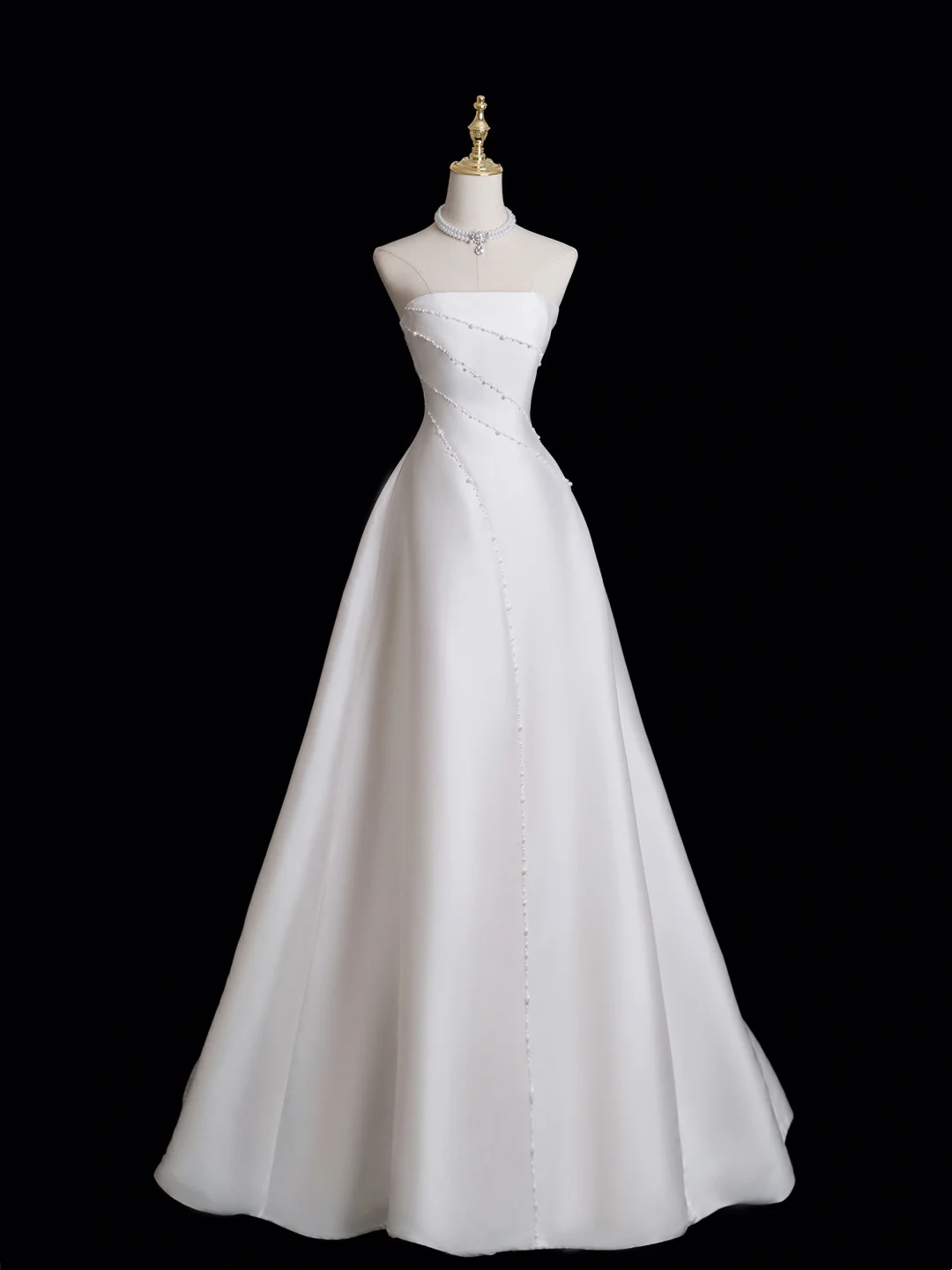 Timeless Ball Gown Strapless Sleeveless Satin Fitted Long Wedding Dress Bride Gown Wedding Dresses HZ0311
