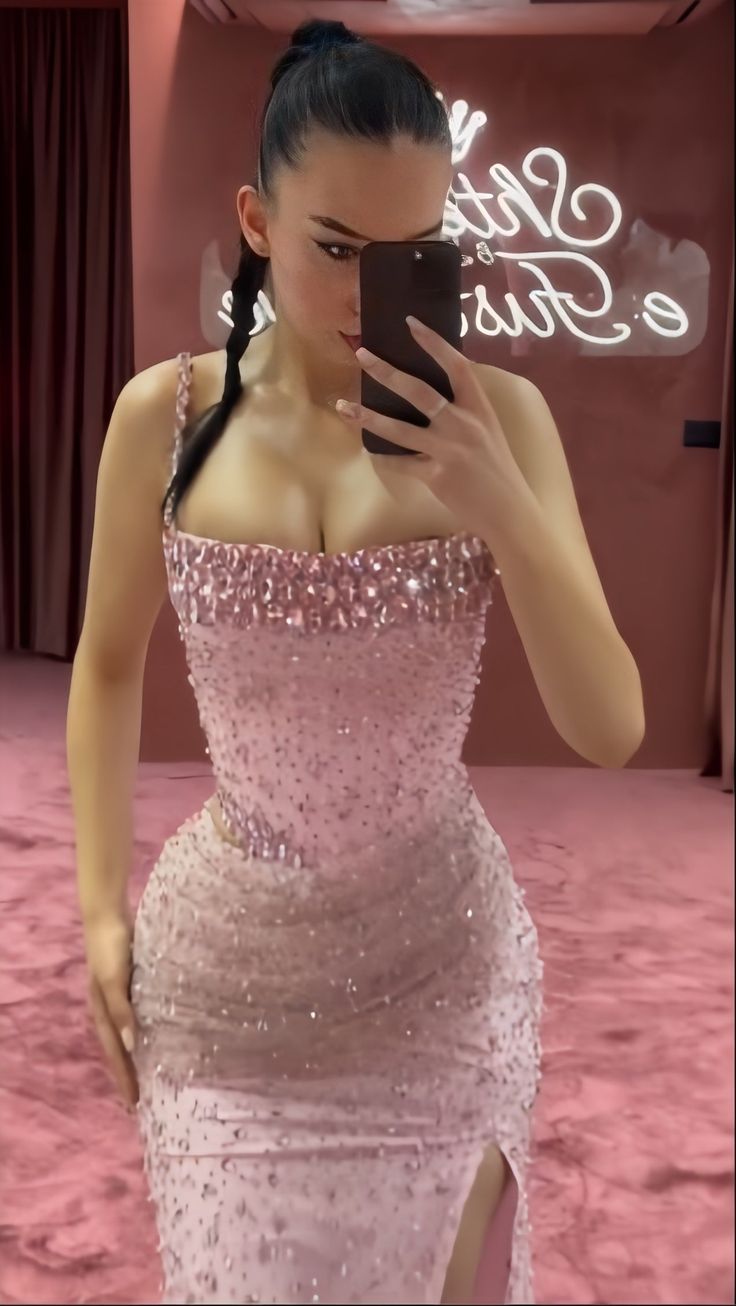 Unique Mermaid Spaghetti Straps Silver Sequin Pink Prom Dresses Long Party Dress 22th Birthday Outfits Formal Gown HZ0311