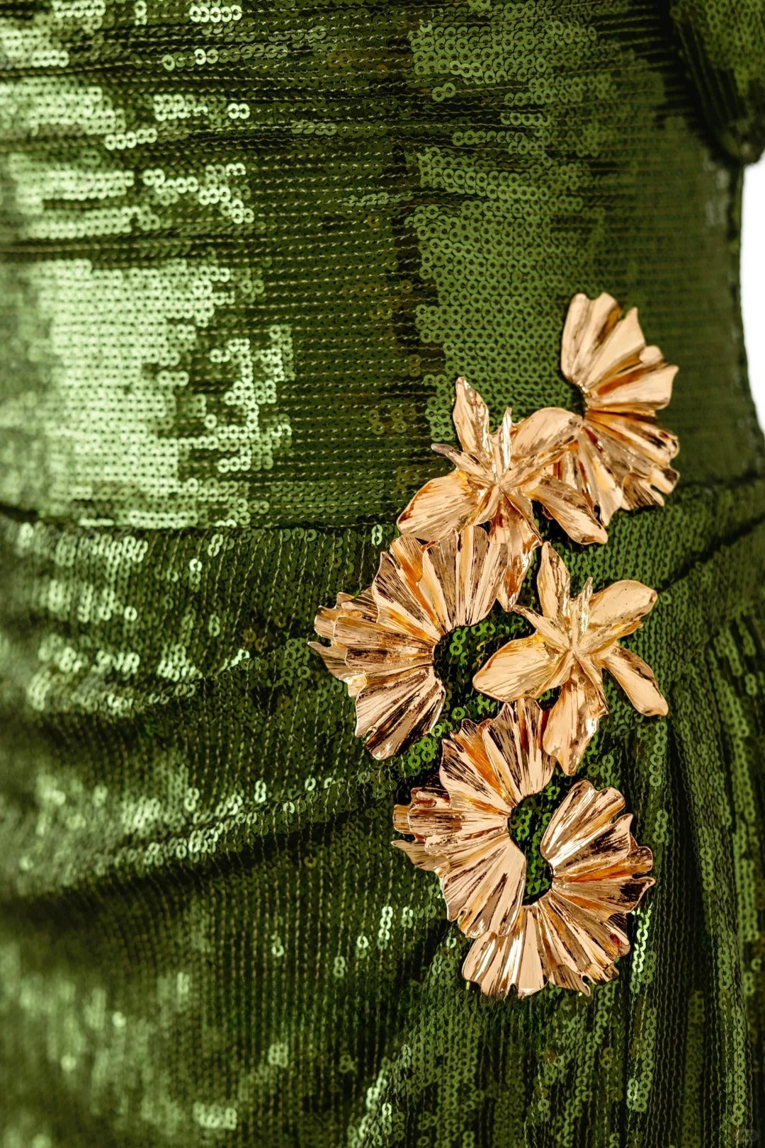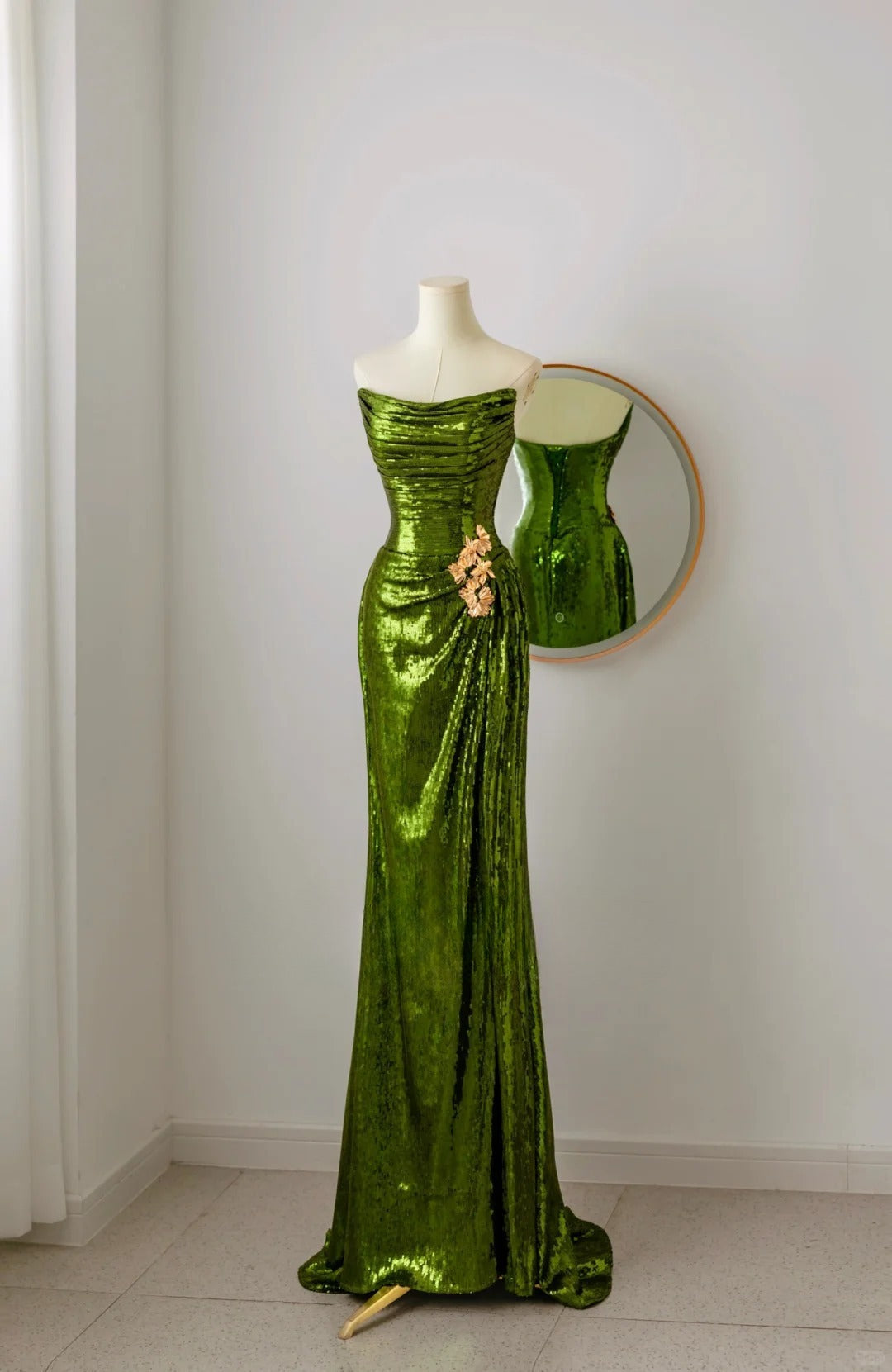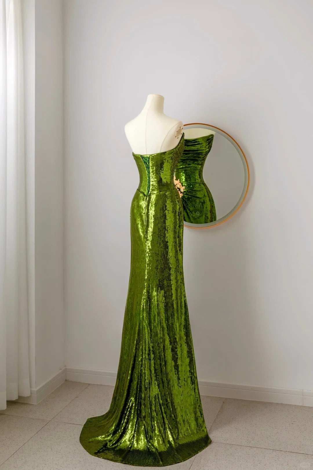 Unique Mermaid Strapless Green Sequin Prom Dresses Long Party Dress 20th Birthday Outfits Formal Gown HZ0311