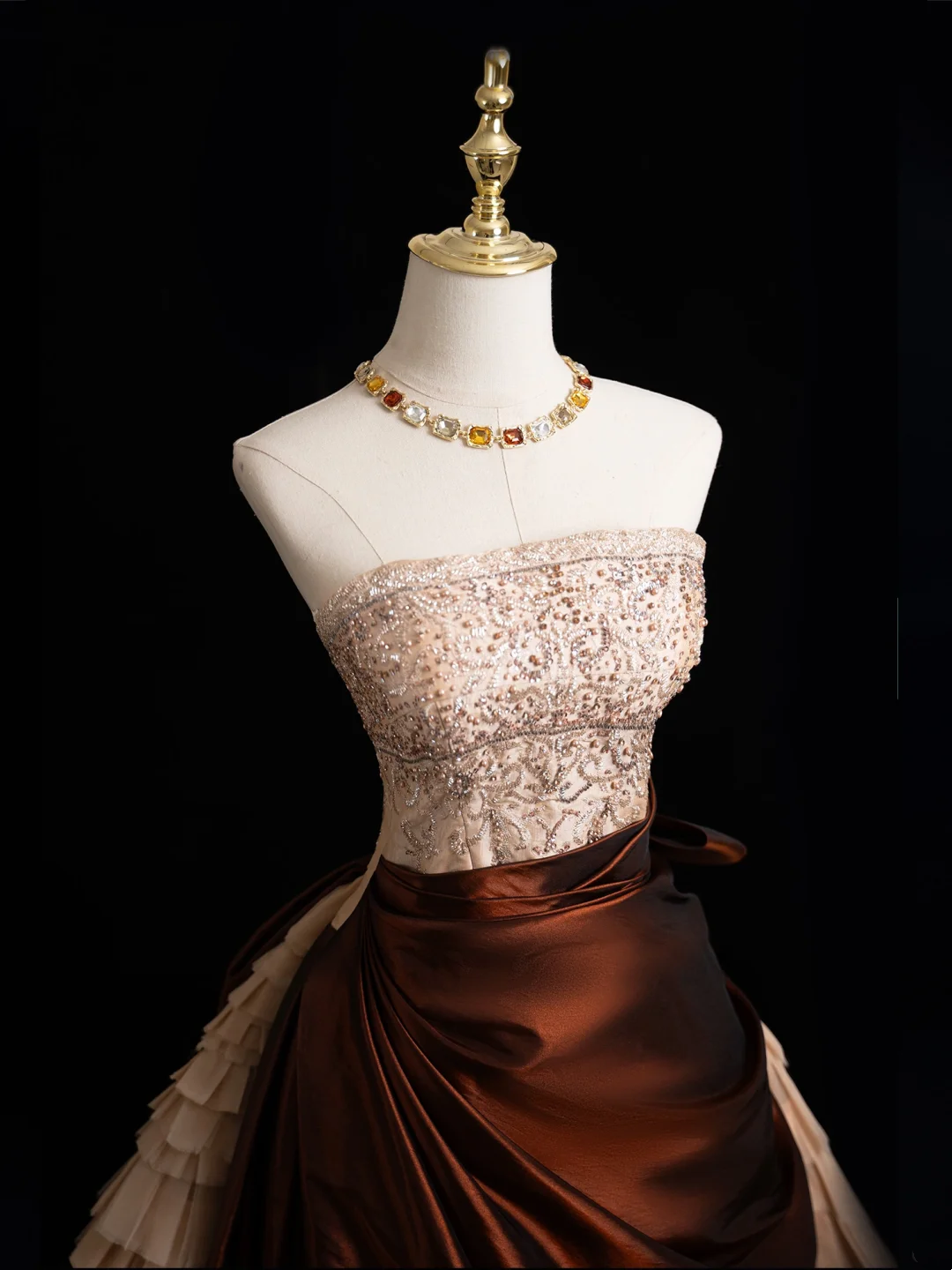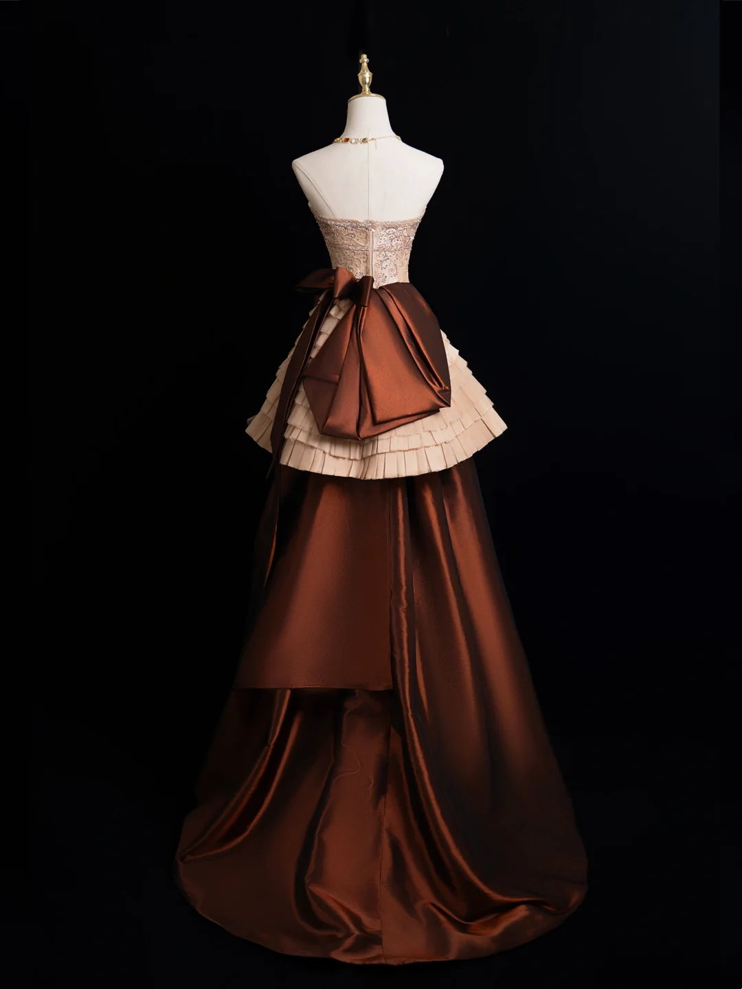 Vintage Ball Gown Strapless Brown Satin Long Prom Dresses Impress Sweet 16 Birthday Outfits Prom Gown HZ0311